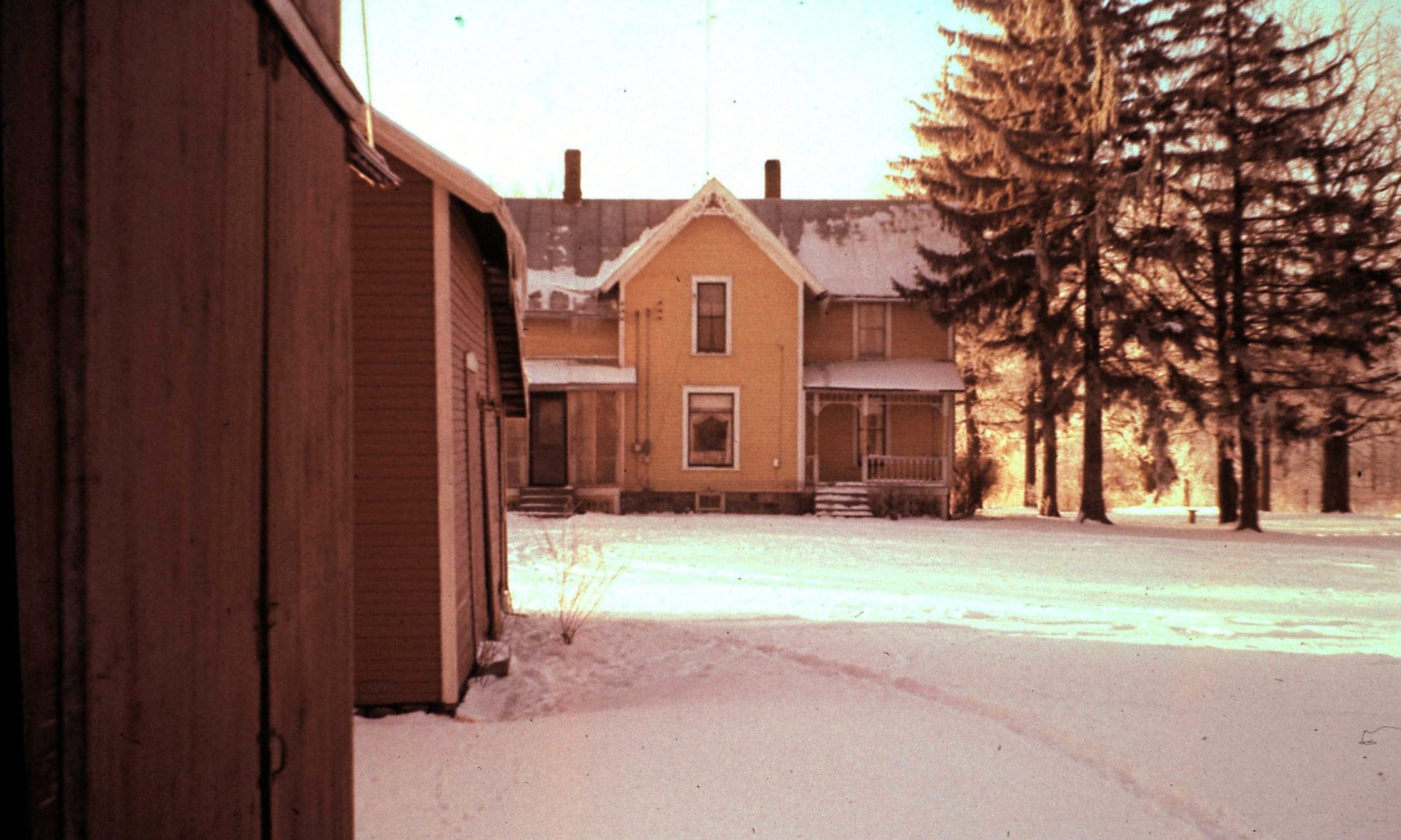 The otherwise screened porch was covered with heavy plastic during the winter, providing somewhat of a wind break when entering the kitchen door on the north side of the house. Ice accumulated on the porch roof, and later we had to be careful of it dropping as temperatures began to rise.